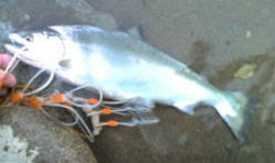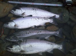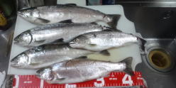 サツキマス 43cm×3匹 37cm・36cm・34cm エサ:ミミズ |