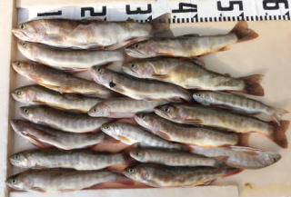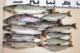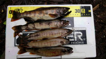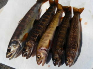 岩魚 最大35cm 19匹 エサ:ミミズ 荘川支流 |
