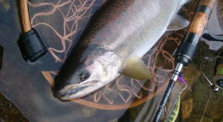 渇水で条件が厳しい中 泣き尺あまごが釣れました。 |