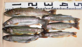 いわな 32cm他 エサ:ミミズ 打波川 (福井県) |