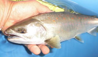 今季初のサツキが釣れました。 稚鮎のナブラの中からのヒットでした。 10時 スプーン |