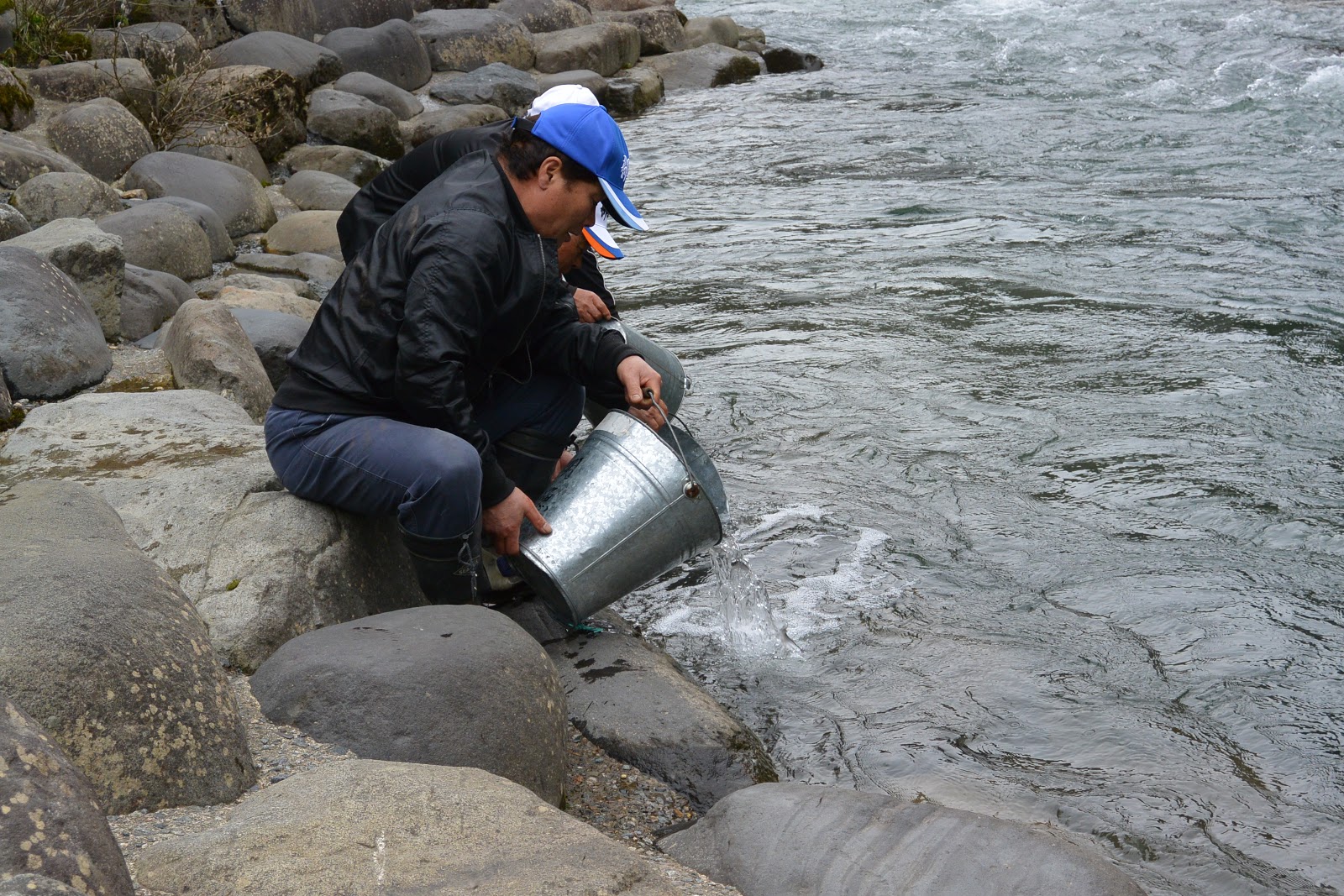| 海産系人工産(初期にナカナカ機能しない) 秋に網などで採取した天然遡上の親アユから採卵して、そこから孵化した魚を池で育てて翌年に放流するケ-スが多い 天然親魚から生まれたF1と呼ばれるものは、冷水病には強いとされるが、初期には掛りにくいという点が指摘されている ただ、海産と同じ晩秋まで釣が楽しめる。地元のアユを親アユにした場合は遺伝的にも同じグル-プで、 愛知・岐阜両県ではこれが放流の軸となっている川が多い。(岐阜の主力アユ) 海産と産卵に加わった場合、その卵から生まれた魚は、翌年に遡上する可能性が高いことも報告されている。 |