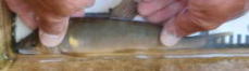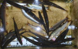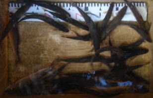 昼から西川橋上流に入りました 前日30匹の話を聞きながら 夕方船橋市の川合君と二人 なんとか10匹キ−プ |