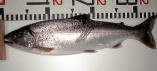 0.5号の糸で 格闘しました。 始めてのサツキマス 剥製にして 記念に残します。 |